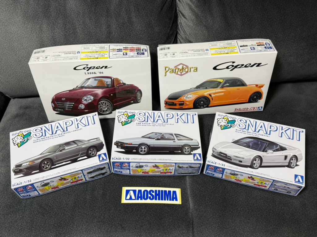青島文化教材社さまよりプラモデルを協賛いただきました✨L880Kアルティメットエディション・パンドラエアロの2種と、楽プラシリーズのAE86型トレノ、R32型GT-R、NA1型NSXです!