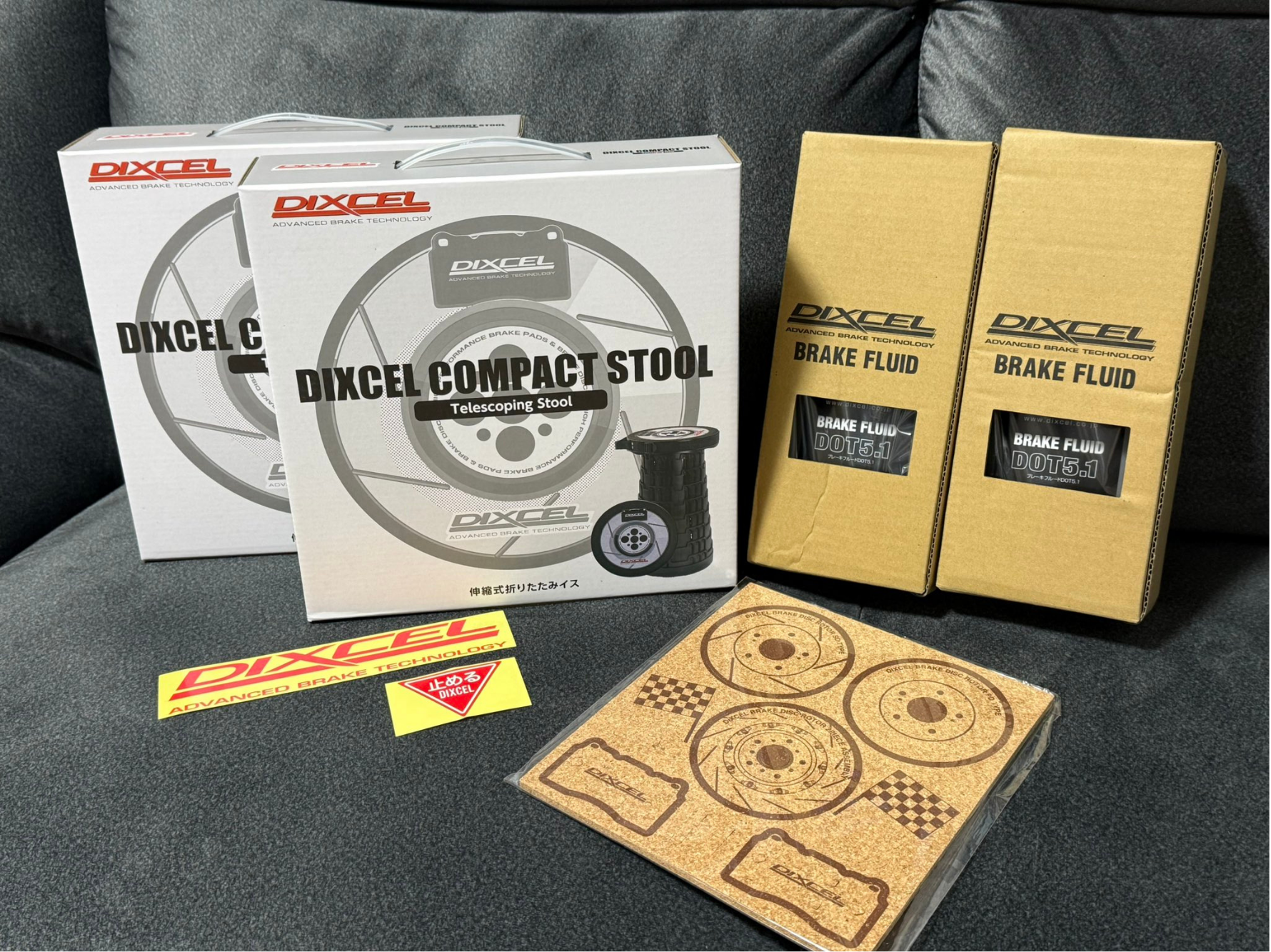 DIXCELさまからはブレーキディスク柄の折りたたみイス、DOT5.1のブレーキフルード、ブレーキ型コースター等をいただきました!!