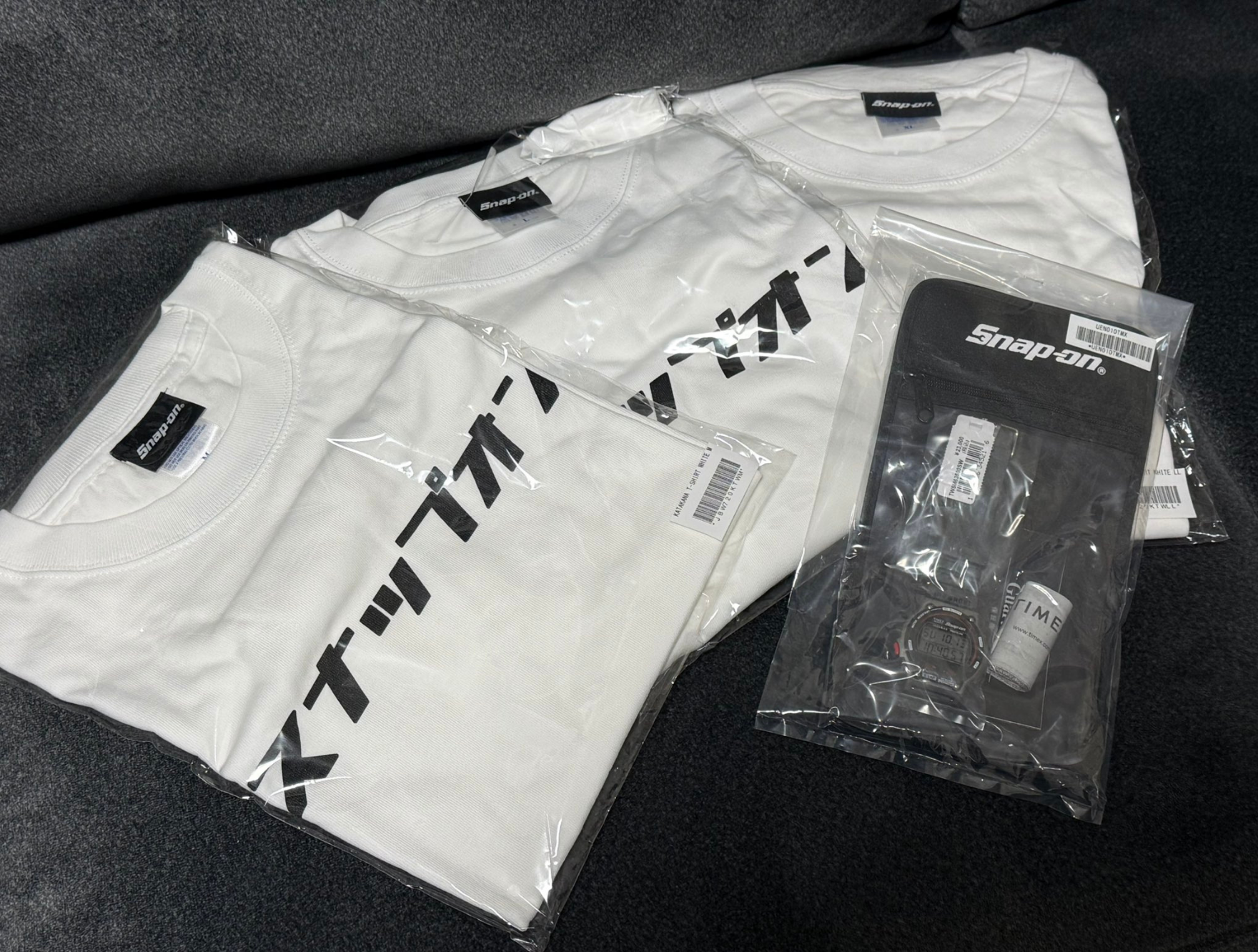 スナップオン・ツールズさまからはカタカナロゴTシャツと限定1000本の腕時計、さらには巨大なソケット柄ビーズクッションをいただきました✨🛠️