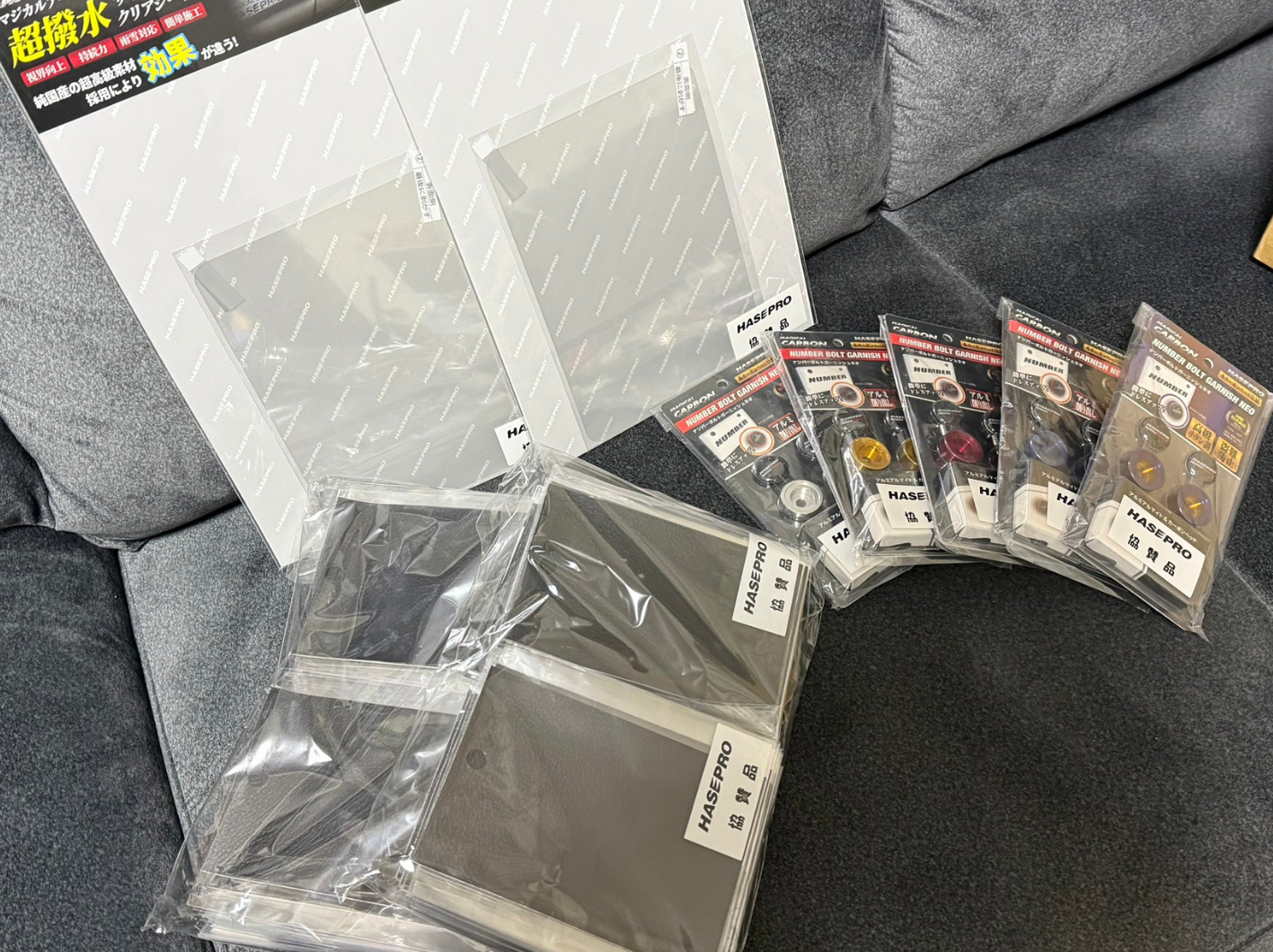 HASEPROさまからナンバーボルト、サイドガラス用の撥水シート等をいただきました✨